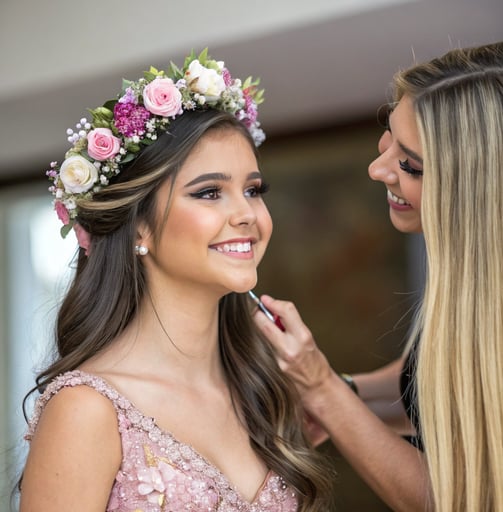 Brilhe na sua festa de 15 anos com uma maquiagem exclusiva que valoriza sua beleza única e deixa todos os presentes deslumbrados e fascinados com seu brilho inesquecível.